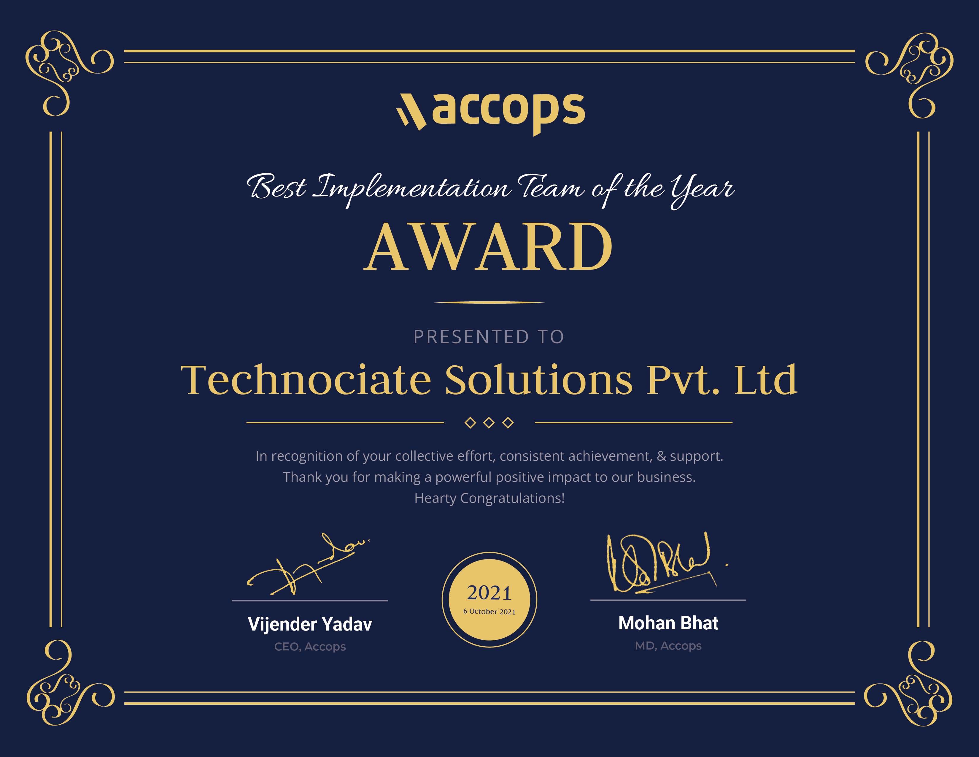 2021 Best Implementation Team of the Year Award